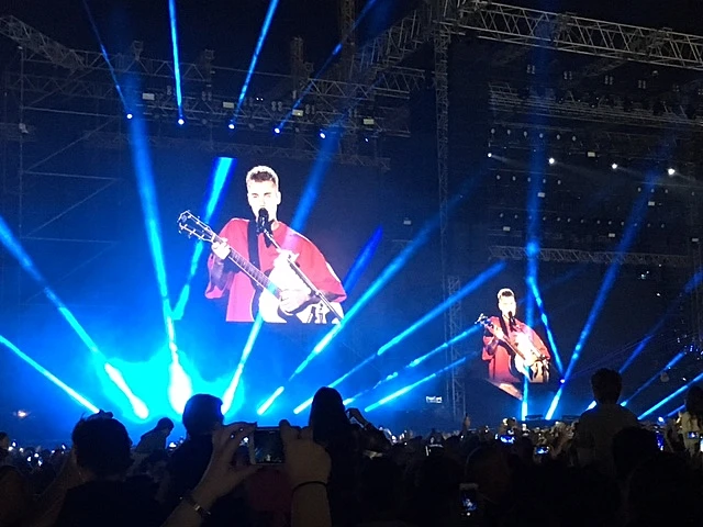 אלו היו כמו שתי הופעות על במה אחת: מוצר הפופ המהונדס, עם השירים הנצפים ביוטיוב, ועוד בחור שנראה מתוק ורגיש וגם, באופן אירוני עד כאב - כמישהו שרוצה להתגלות כזמר, זמר אמיתי (כשהוא כבר מופיע מול עשרות אלפי אנשים).