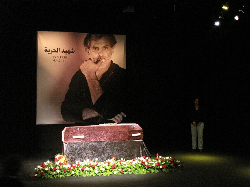 היוצר והשחקן שנרצח לפני יומיים בג'נין יטמן לצד אימו בבית העלמין ברמות מנשה. ארונו של מר הוצב בתיאטרון בחיפה ורבים הגיעו כדי לחלוק לו כבוד אחרון. "הוא החליט לדבוק בדרך יוצאת דופן, להפוך את מחנה הפליטים למחנה שהוא שותף בדיאלוג תרבותי", אמר ראש עיריית חיפה. "האומן היחיד שהעז לעשות ואנחנו לא עשינו", הוסיפה השחקנית קלרה חורי