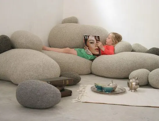 מערכת הכריות הכיפיות של המותג smarin שואבת השראה מחלוקי נחל בגדלי ענק.