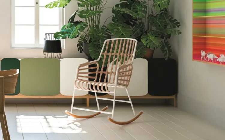 כסא הנדנדה הכיפי הזה נעשה מתוך כוונה ברורה להפגיש בין שני עולמות, תעשיית המתכת והיצרנים הקטנים של מוצרי הקש.