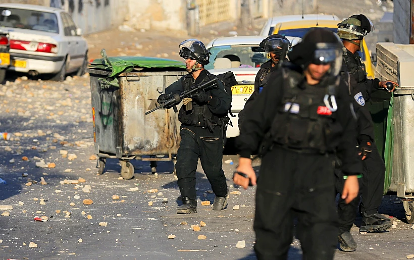 פלסטינים מיידים אבנים לעבר שוטרים בוואדי ג'וז בירושלים | צילום: רויטרס