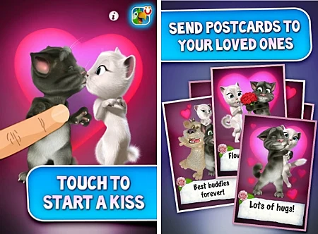 אפליקציית Tom's Love Letters מאפשרת לכם לשלוח ברכות שמציגות חתולים מאוהבים. האפליקציה כוללת גלויות בעיצובים שונים, שירים ואפשרות להוספת אנימציה של חיבוק או נשיקה. את הברכה תוכלו לשלוח באמצעות המייל, פייסבוק או בהודעת MMS.