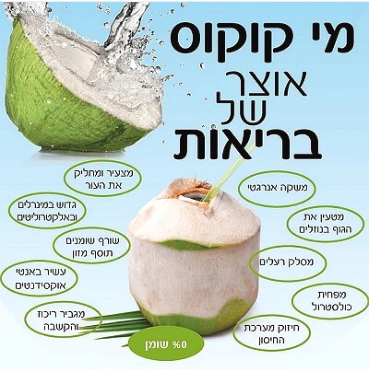 שתיית מי קוקוס היישר מהאגוז הפכה לפופולרית ברחבי העולם מכיוון שמדובר בצורה הישירה ביותר לצרוך משקה בריאות היישר מהטבע, ללא שום תוספת של חומרים מעובדים. רשימת היתרונות הבריאותיים של שתיית מי קוקוס ארוכה וביניהם: סילוק רעלים מהגוף, הפחתת כולסטרול, הגברת קצב חילוף החומרים, חיזוק מערכת העיכול ועוד. מי הקוקוס הירוק הם טעימים ומתוקים, והפלא ופלא - מכילים אפס אחוז שומן ואין בהם סוכר.