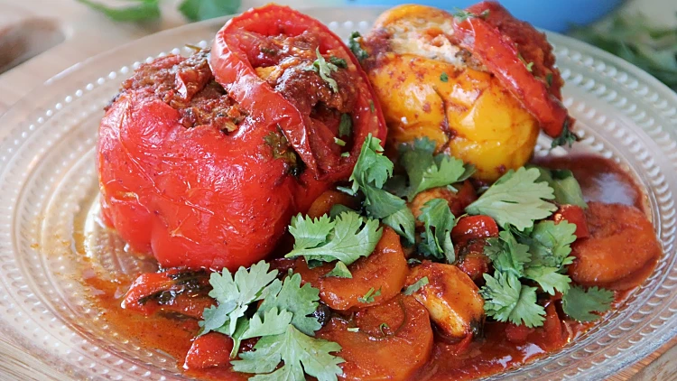 - מגישים שני פלפלים לסועד ואם אוהבים מפזרים מעל מעט כוסברה טרייה.