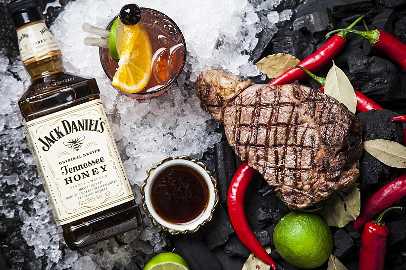 • דלאל: Rump steak & ג'ק דניאלס פטריות שימג'י ושאלוט מוקפצות בג'ק דבש, צ'יפס ארטישוק ירושלמי וסלט בוויניגרט ג'ק דניאל'ס 62 שקלים.