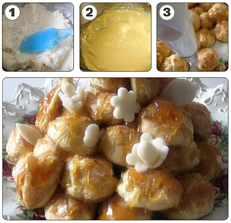 העיצוב נעשה בעזרת שקית זילוף, אך ניתן לעצב גם בעזרת שתי כפיות. ישנה אפשרות נוספת והיא לעצב אצבעות הנקראות אקלרים. במתכון נתתי הוראות למיני פחזניות ובסיום עיצוב בצורת מגדל , הנקרא בשמו המקצועי: קרוקמבוש, כלומר מתפצפץ בפה. בחרתי במילויים קלי הכנה וכן בזילוף קרמל לא מורכב אלא קל. אם אתם מכינים את הבצק לראשונה יתכן שפעולת ההכנה לא תיצלח, אך אל יאוש בפעם השניה תצליחו. טיפ חשוב: מוצרי בצק רבוך נשמרים במקפיא ולא במקרר משום שהם סופגים רטיבות.