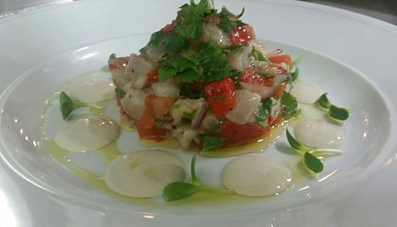 הוספנו לשולחן גם סביצ'ה דג (48 ₪), מנה שתובלה בעדינות אך נחתכה בגסות. גודל קוביות הדגים עלה על גודל העגבניות והבצל הסגול, כך שבכל ביס חסרה לנו ההרמוניה שמאפיינת מנות דג עדינות כמו סביצ'ה טרי. במקום להרגיש את החיבור בין כל חומרי-הגלם בביס אחד, מצאנו עצמנו לועסים במרץ את קוביות הדגים העבות ומפספסים את העיקר.